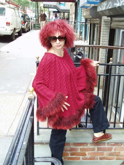 fur trim and cabled and dyed lamb fur trimmed hat. 100% double end